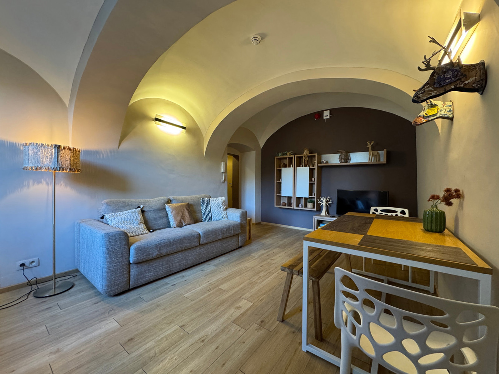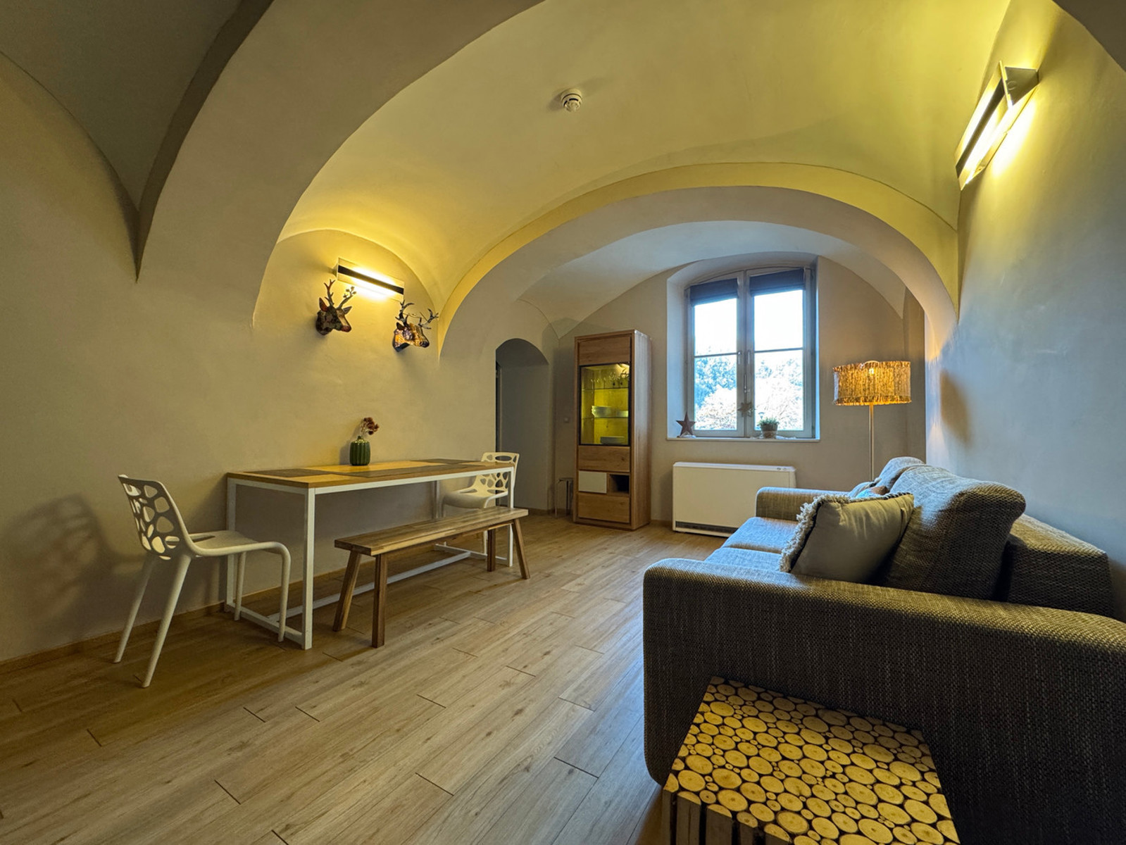 DURBUY: Appartement 1 chambre en plein centre de Durbuy, dans l'ancien couvent des Récollets. Cet appartement confortable actuellement exploité comme hébergement touristique se compose d'une chambre, une salle de douche attenante, une cuisine équipée, un séjour, un WC indépendant et un hall d'entrée. Équipement: chauffage électrique à accumulation, châssis bois double vitrage, électricité conforme, compteurs individuels,.. Vendu meublé. Rens. et visites: julian@antoineimmo.be - 0471/67.44.61