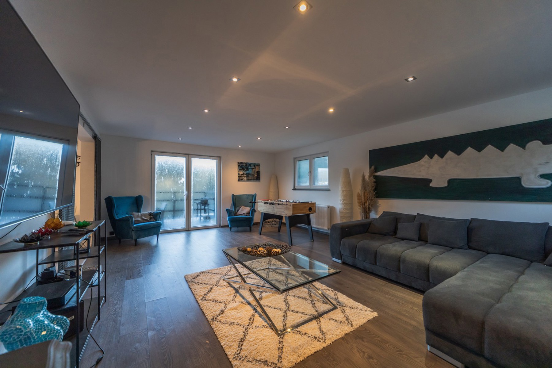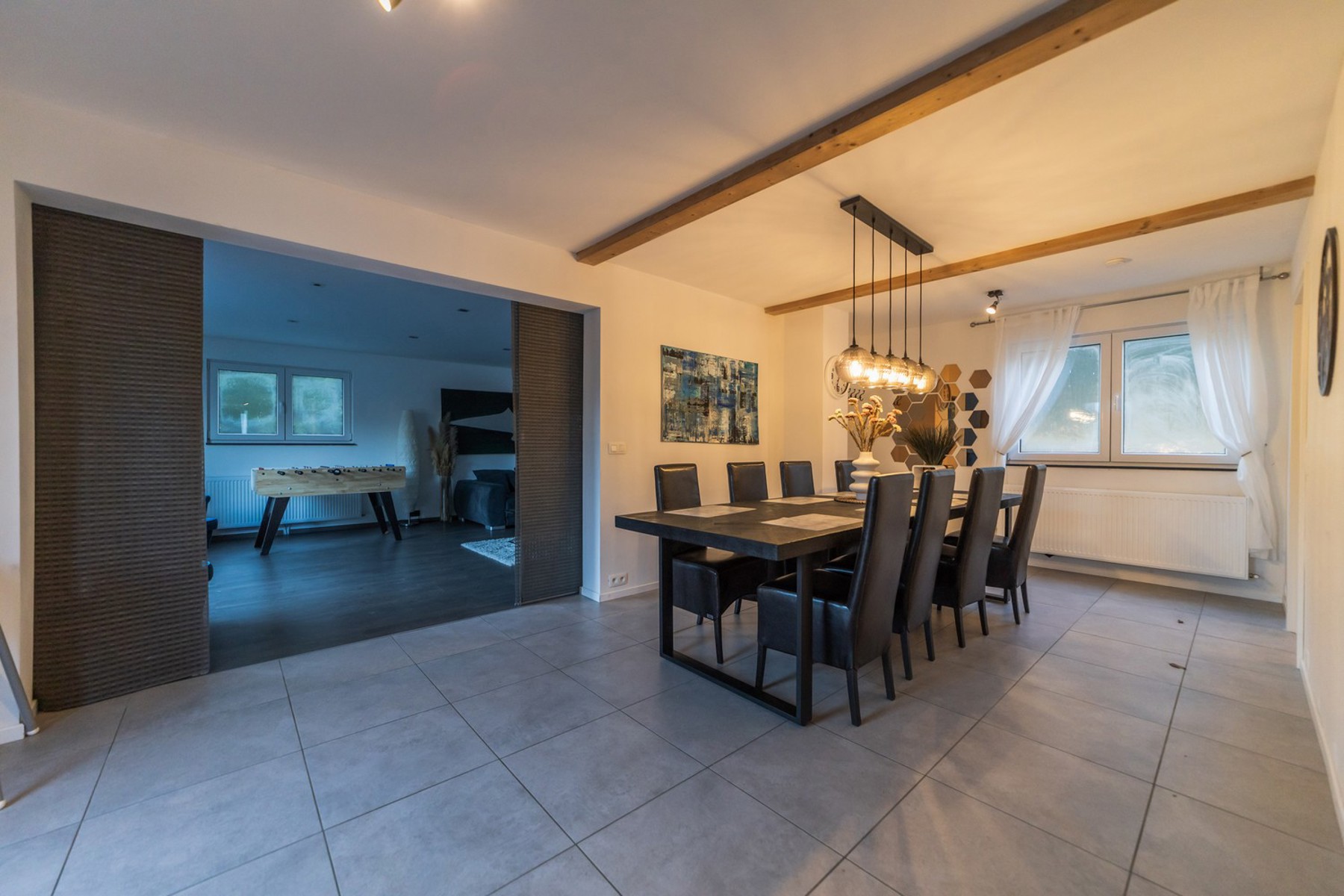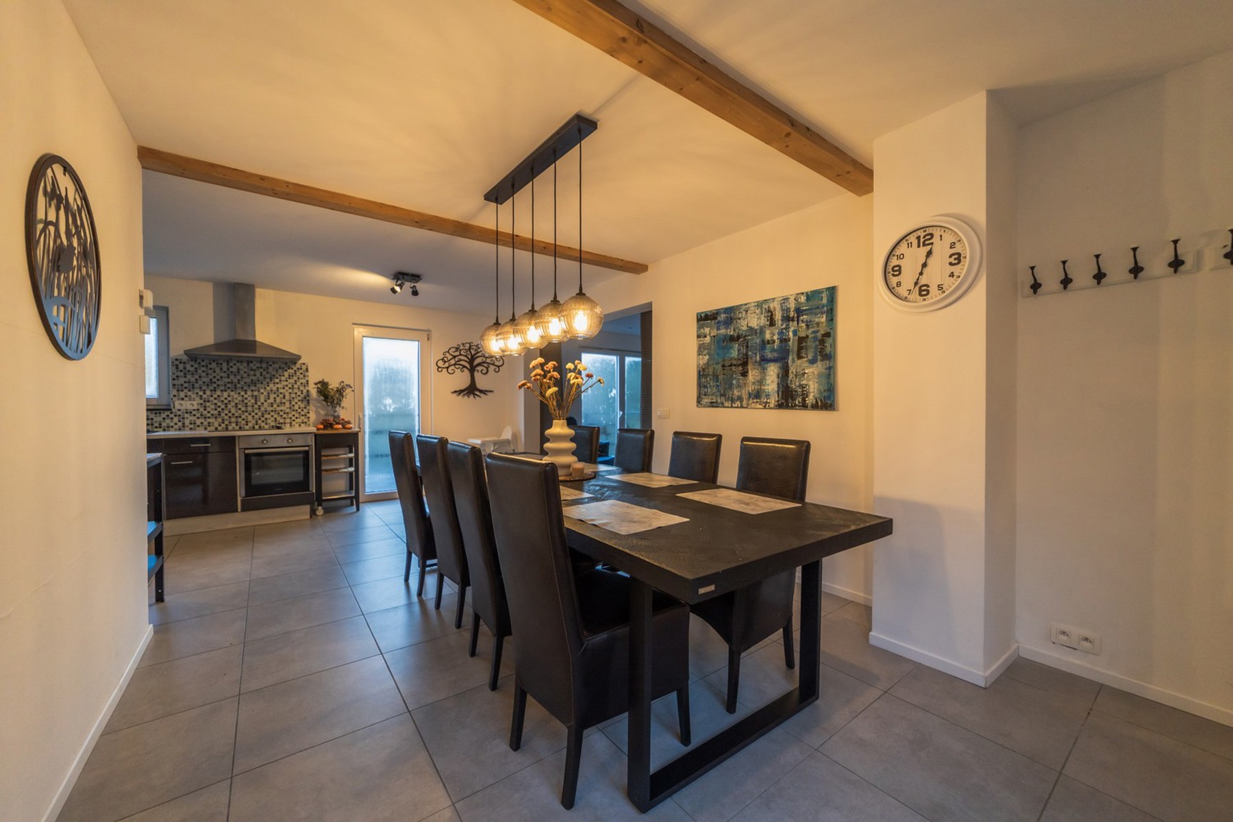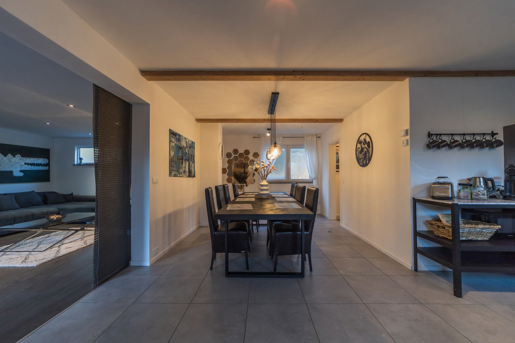 - Un vaste espace de vie ouvert, lumineux, avec salon, salle à manger et cuisine équipée donnant sur une agréable terrasse.