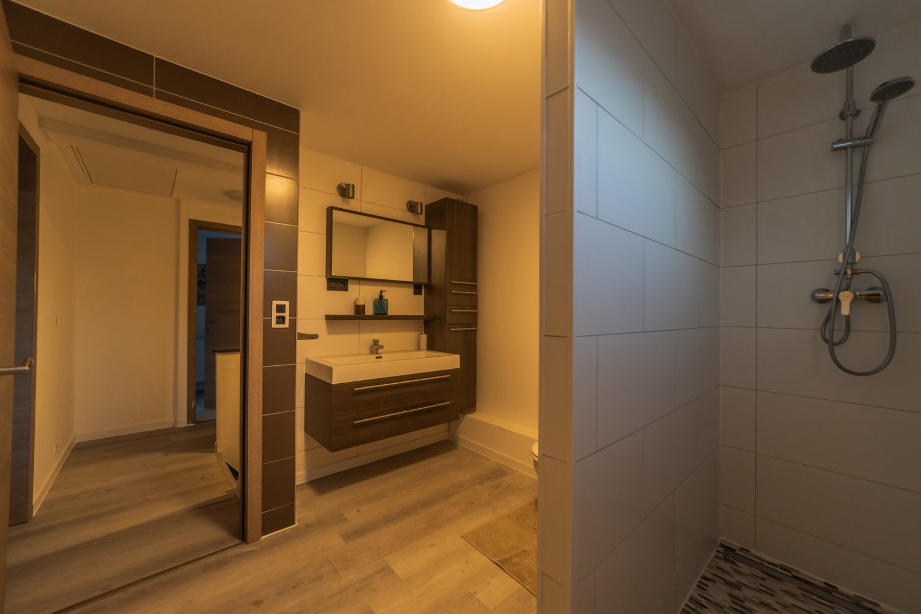 Le sous-sol de plain-pied, impressionnant par sa surface et sa hauteur sous plafond de 3 mètres, est accessible depuis le grand parking privé situé à l’arrière. Il comprend déjà un WC séparé, et se prête parfaitement à un atelier, un espace de stockage, ou pourquoi pas un futur spa ou espace bien-être.