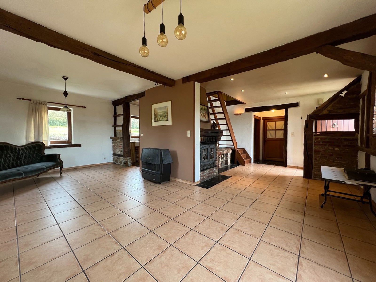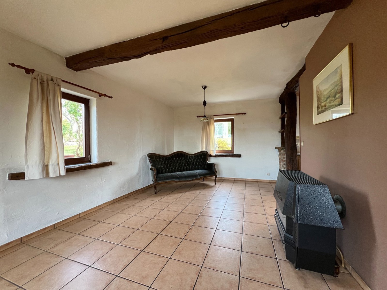 Equipements : cassette à bois et poêle mazout, châssis double vitrage en bois, nouveau boiler, adoucisseur d'eau, citerne d'eau de pluie 5.000 L, station d'épuration individuelle...