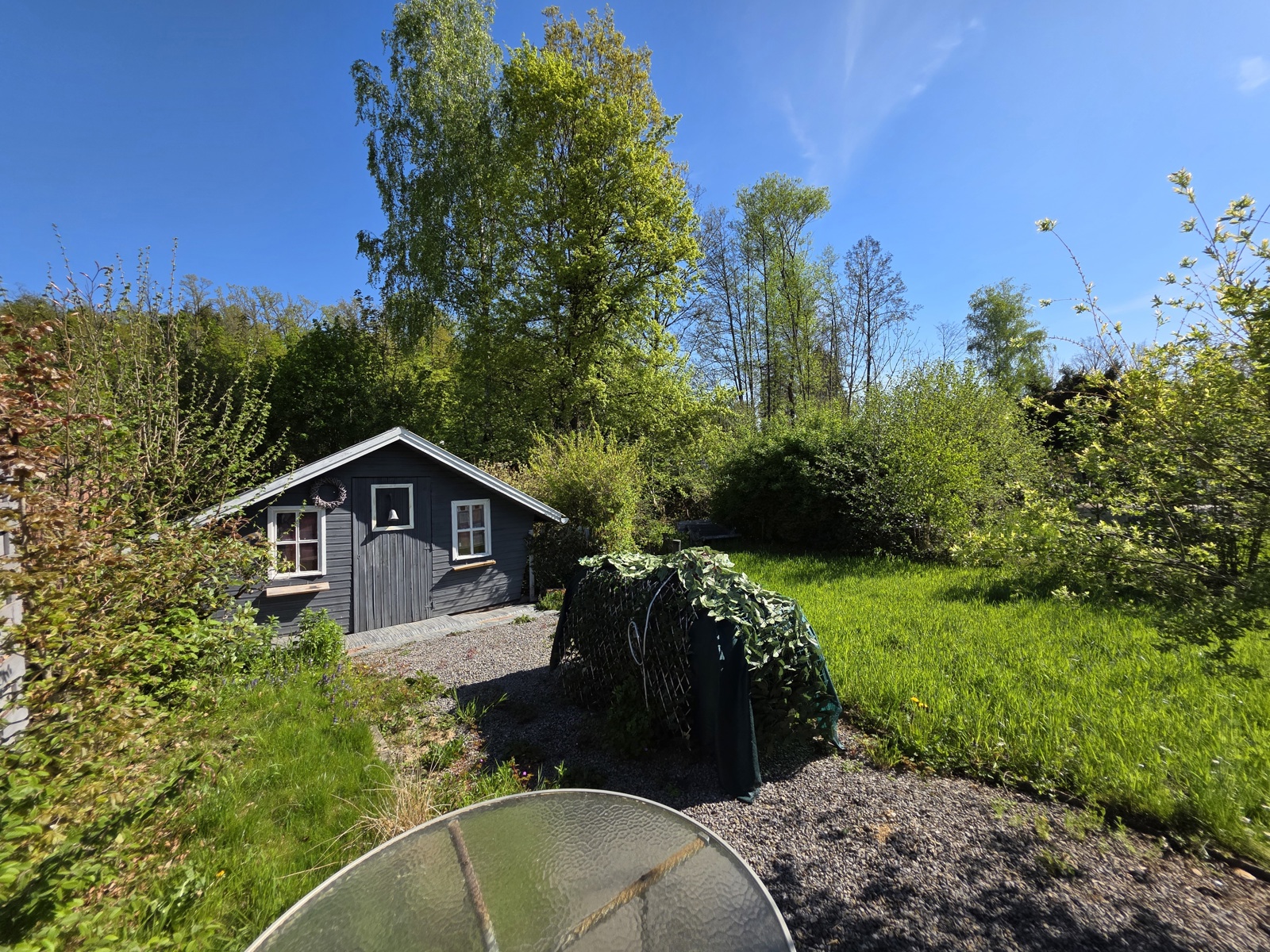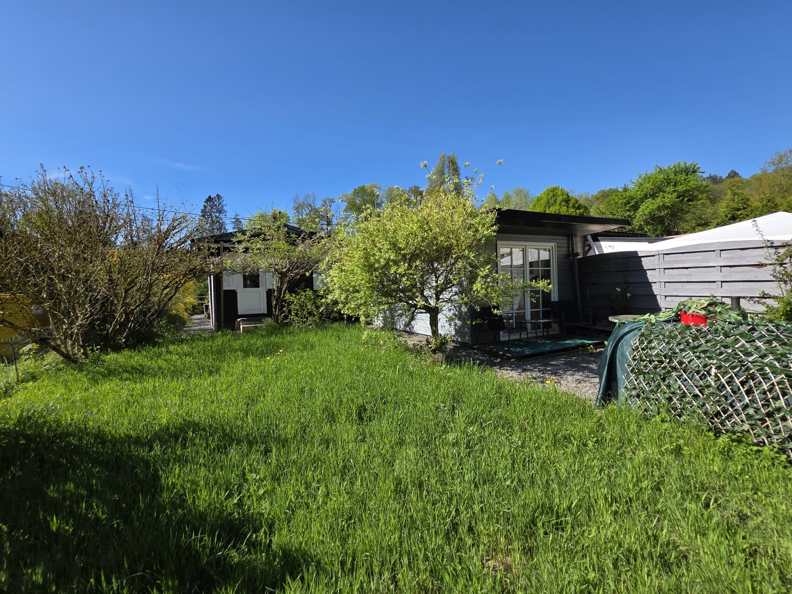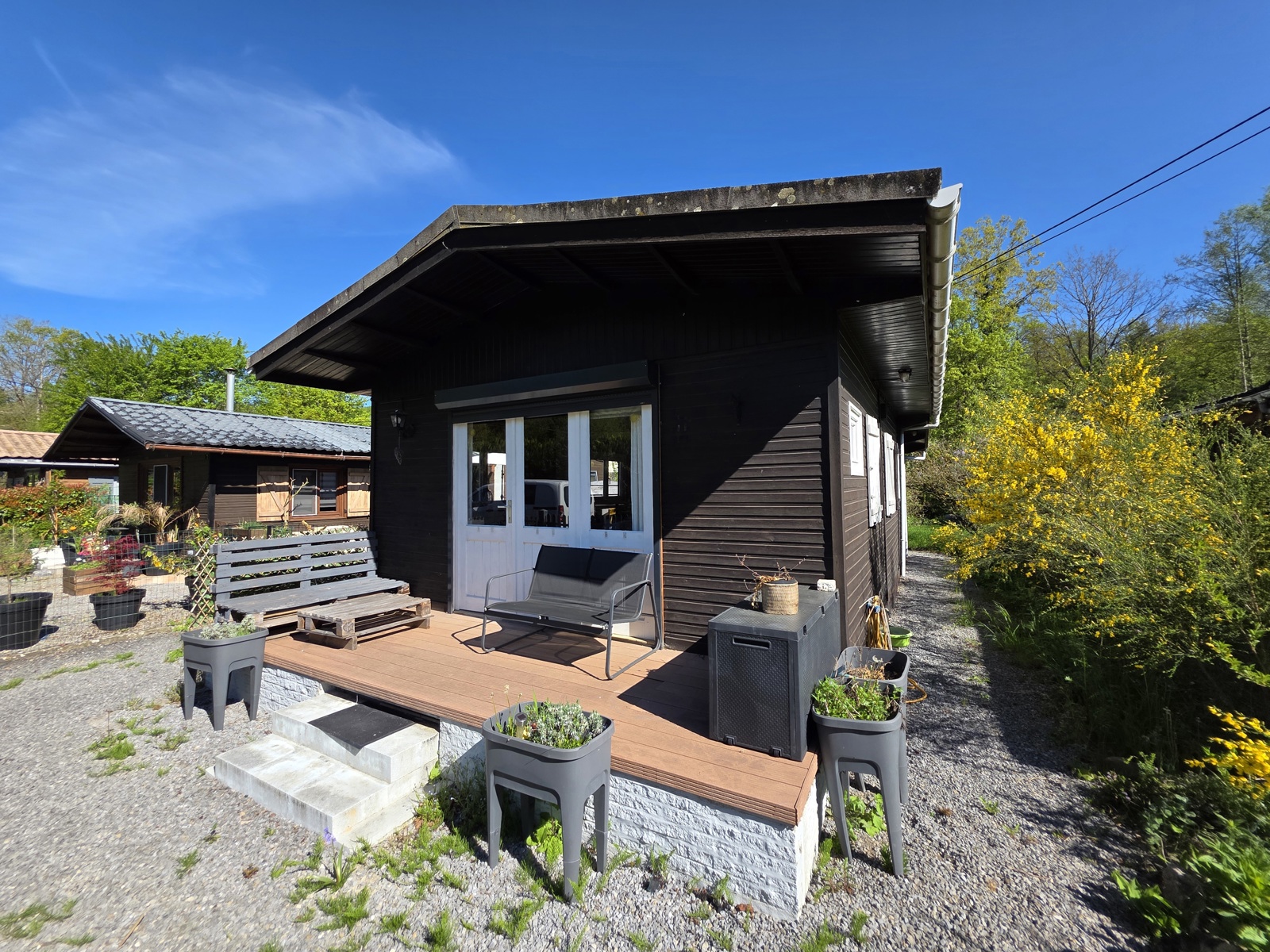 À l’extérieur, vous profiterez d’un jardin agréable, idéal pour se détendre ou recevoir. Le garage a été transformé en bureau/chambre et un abri de jardin permet également d’accueillir des invités ou de disposer d’un espace polyvalent.