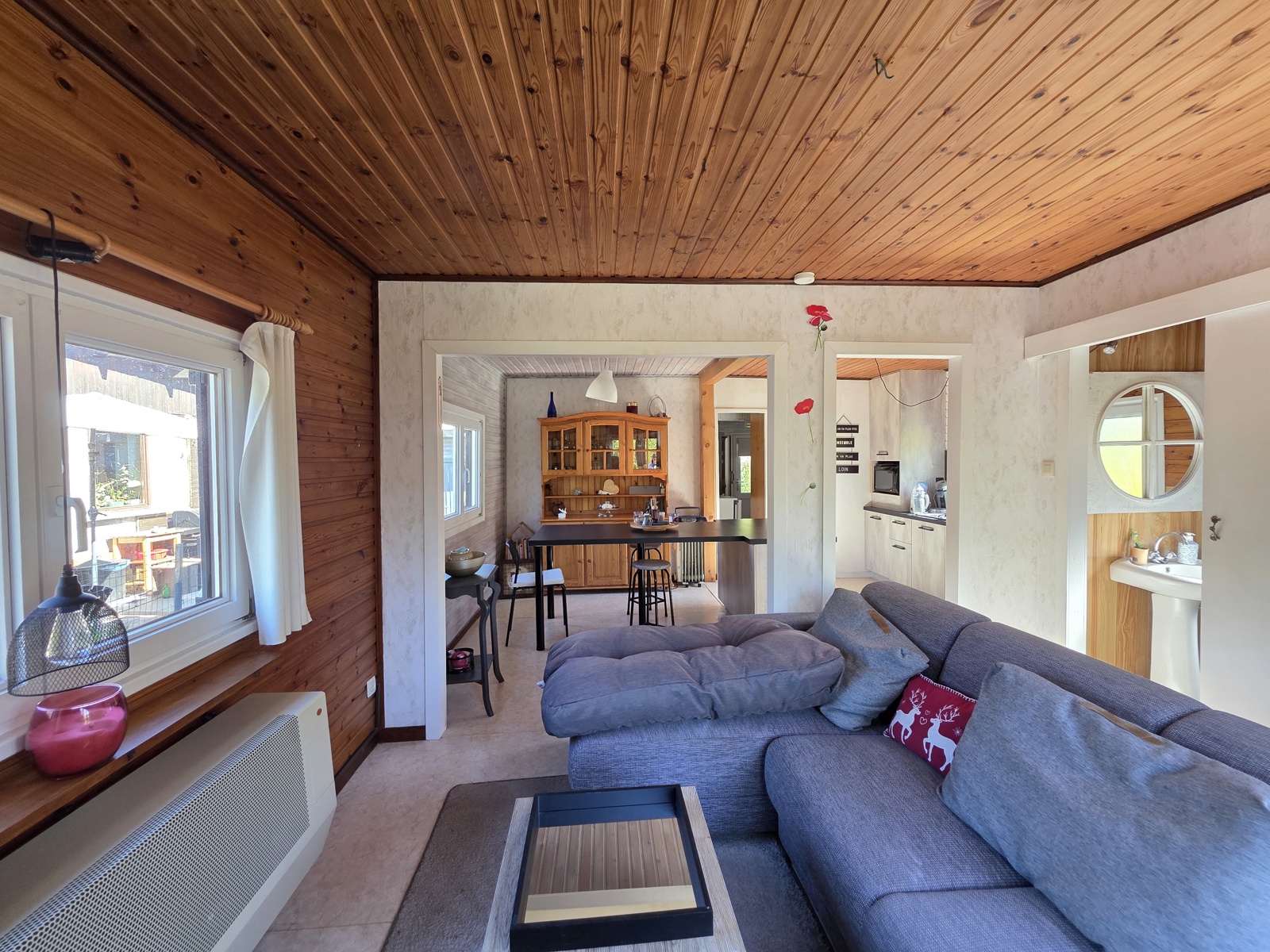 -VENDU - Situé à seulement 3 minutes du centre de Durbuy à Grandhan, ce chalet rénové bénéficie d’un emplacement pratique sur un terrain de 343 m².